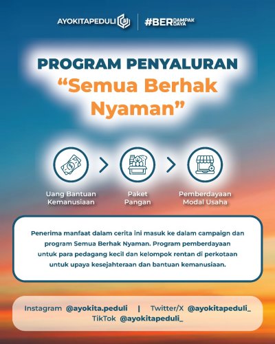 *Ayo Kita Peduli merupakan NGOs yang berdiri sejak 2023 dan berada di bawah naungan Ayo Berdampak Berdaya. Dengan tagline #BerdampakBerdaya kami berfokus pada masalah kemiskinan kelas sosial rentan perkotaan dan pedesaan melalui berbagai program dan campaign pemberdayaan untuk upaya peningkatan kesejahteraan.