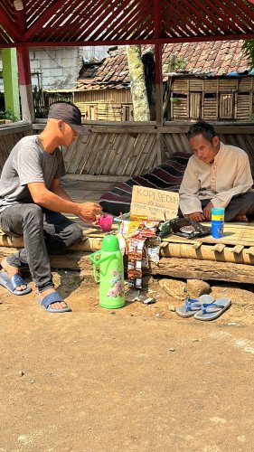 Meski menahan sakit, Abah tetap berjualan kopi dan menjalankan tugasnya di masjid.