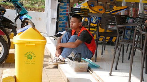 Sepulang sekolah, anak berusia 16 tahun ini langsung bekerja. Ia membuat batako, tangannya yang mungil harus mengangkat pasir dan semen yang berat. Dari sana ia hanya mendapat beberapa ribu rupiah.