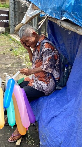 Sejak tahun 2008, Abah Asep menggantungkan hidupnya dari berjualan balon keliling. Sudah lebih dari delapan belas tahun beliau melangkah dari kampung ke kampung sejauh sepuluh hingga dua puluh kilometer setiap hari, demi satu tujuan sederhana: agar anak dan cucunya bisa makan dan tidak kekurangan. Meski hidup tidak pernah mudah, Abah tidak pernah kehilangan semangat untuk terus bermanfaat bagi banyak orang.