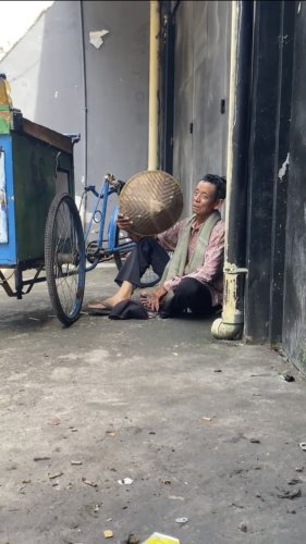Ketika sedang berjualan Abah sering kelelahan dan hanya bisa duduk di pinggir jalan sambil menahan lapar karena belum ada uang untuk membeli makan.