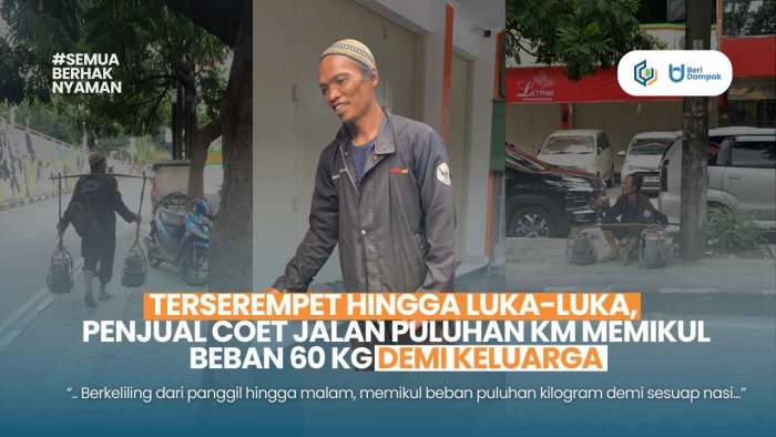 Tak jarang beliau mengalami musibah selama mencari nafkah di jalanan. Mulai dari terserempet hingga cobeknya hancur dan berserakan hingga dagangannya dicuri ketika beliau beristirahat dan menunaikan ibadah di mushola terdekat.
