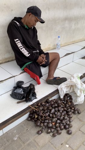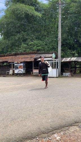 Dan perjuangannya belum selesai. Setelah turun, dengan tubuh yang harus meloncat-loncat, Pak Deni berjalan dari kampung ke kampung, menawarkan jengkolnya satu per satu.