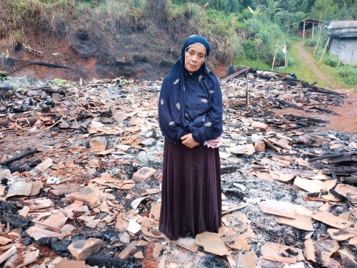 “Waktu itu saya sedang sholat dhuha… lalu tiba-tiba saya dengar teriakan tetangga, dan saat saya keluar, rumah keponakan saya sudah jadi lautan api.” ujar Bu Euis.