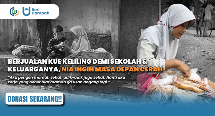Meski penuh keterbatasan, Nia tetap semangat berjualan karena ingin membantu keluarga dan melihat adik-adiknya tetap bisa makan. Ia ingin ibunya tidak lagi harus berjualan keliling sambil menggendong adiknya.