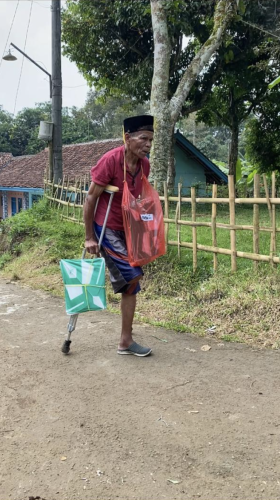 “Satu kaki Abah ini buntung bukan diamputasi, tapi Abah Patahin sendiri karna membusuk. Waktu abis patahin kaki katanya Abah pingsan, pas bangun taunya kaki Abah sudah dibungkus kain sama tetangga”. Ungkap Abah Aden. Sudah lebih dari 5 tahun penyakit diabetes terus menggerogoti sampai Abah kehilangan satu kakinya. kini menyebar ke kaki satunya yang sudah mulai habis jarinya. Abah bukan tak mau berobat, tapi faktor gak ada biaya Abah gak bisa berobat.