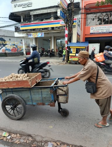 Abah Ahim juga ingin memiliki warung kecil agar tak perlu mendorong gerobak lagi, tubuhnya sudah renta dan beliau sering merasa lelah.