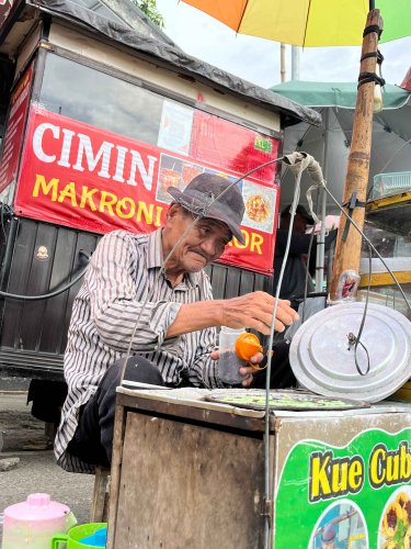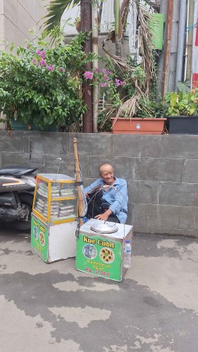 Di usia 75 tahun, Abah Anang masih keliling jalan kaki menjajakan kue cubit di Bandung.