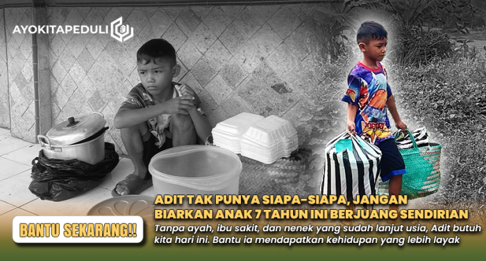 Bantu hari ini, agar Adit bisa tetap sekolah dan tumbuh dengan harapan.