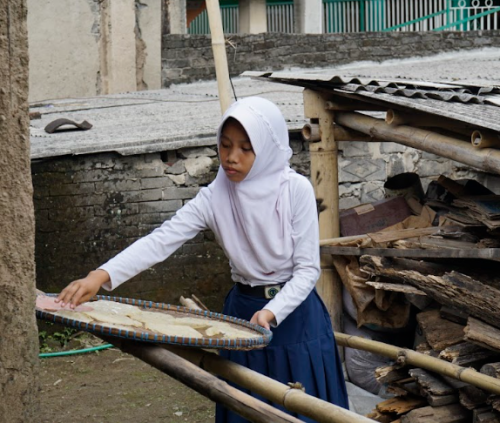 “Aslinya mah capek, pulang sekolah langsung bikin opak terus jualan lagi. Tapi kalau gak jualan nanti aku ga bisa makan dan sekolah,” tuturnya lirih, dengan mata yang berusaha tegar meski sesungguhnya sangat rapuh.