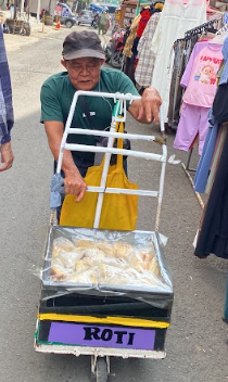 Sudah hampir 30 Tahun berkeliling mendorong dagangannya, roti seharga lima ribu rupiah yang seringkali tak laku.
