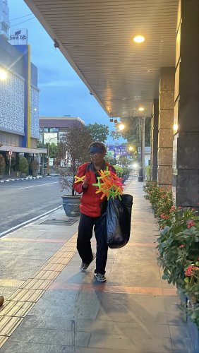Namanya Abah Ajat usianya 55 tahun cuma ingin jual mainan keliling di sekitar Alun-alun Bandung sendirian ditambah penglihatan mata abah yang semakin memburuk karena katarak yang tak kunjung diobati hingga penglihatan abah terancam buta